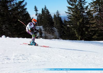 On retrouvait le weekend dernier une épreuve régionale sur le Massif de La Serra, avec une sélection pour les Coqs d’Or à la clé. Elle rassemblait les meilleurs skieurs des 3 départements. Piste technique notamment avec le mur au départ de la Serra, on assistait à de nombreuses chutes (15) en majorité sur le premier tiers du parcours. Avec l’utilisation de sel par les organisateurs, la neige restait bien dure, si on sortait pas du tracé évidement. Grosse délégation pour le seul département de l’Ain avec 43 skieurs (filles-garçons). Malgré la longueur du parcours 45 portes, on assistait à des temps canons (46-47 secondes pour les meilleurs), bref du grand spectacle dés les premières portes.