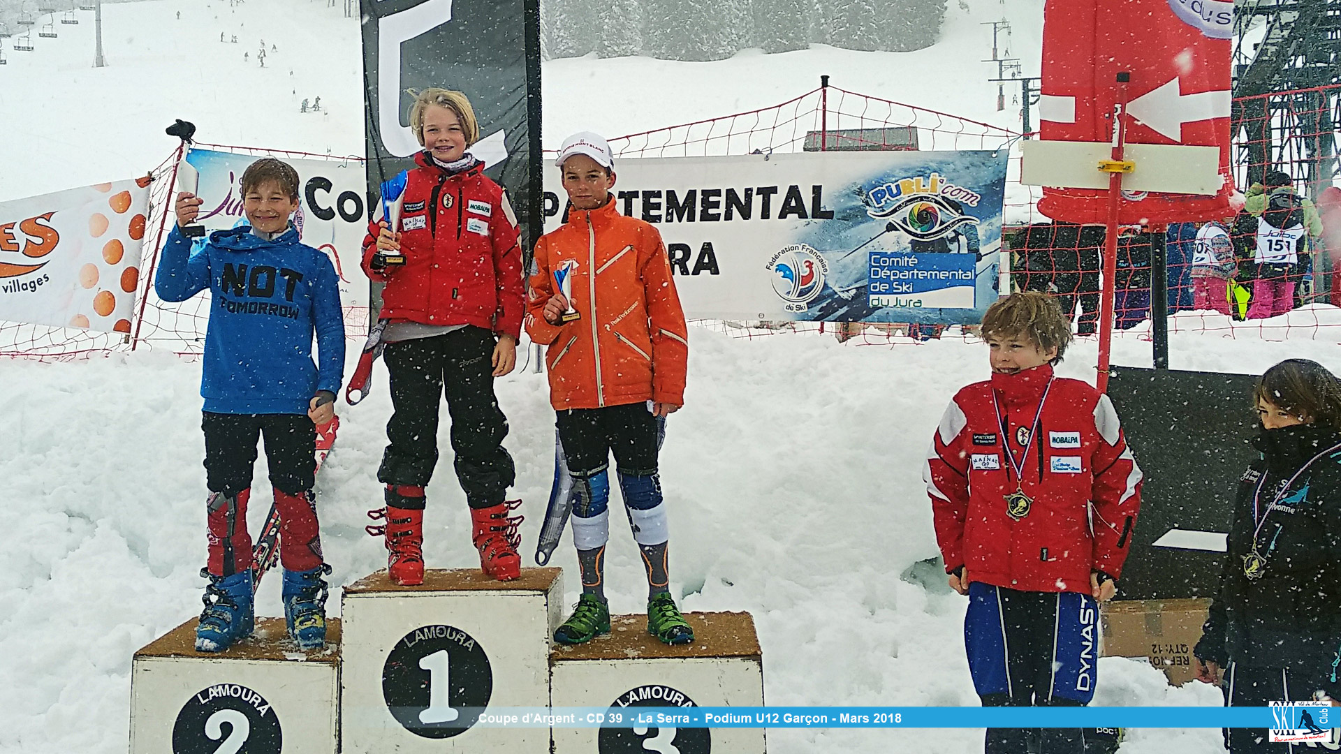 Pour la catégorie U12 garçon (56 skieurs au départ), Zacchaeus Poulsen (SC Jura Gessien) signe le meilleur temps (1’39’95) suivi de Maxence Mouton (SC Jura Gessien) en 1’43’53 et pour la troisième marche du podium Titiouan Tremblay (SC ST Genis) en 1’44’71.
